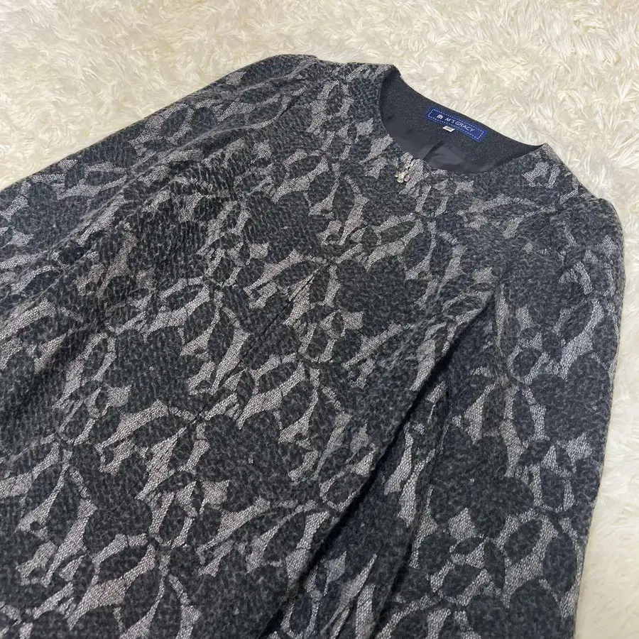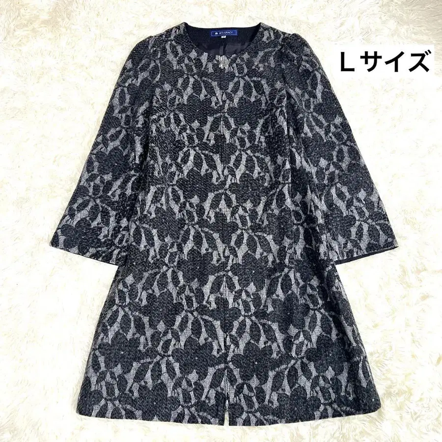 빅 사이즈 엠즈 그레이시 레이스 패턴 노카라 코트 꽃무늬 그레이 L