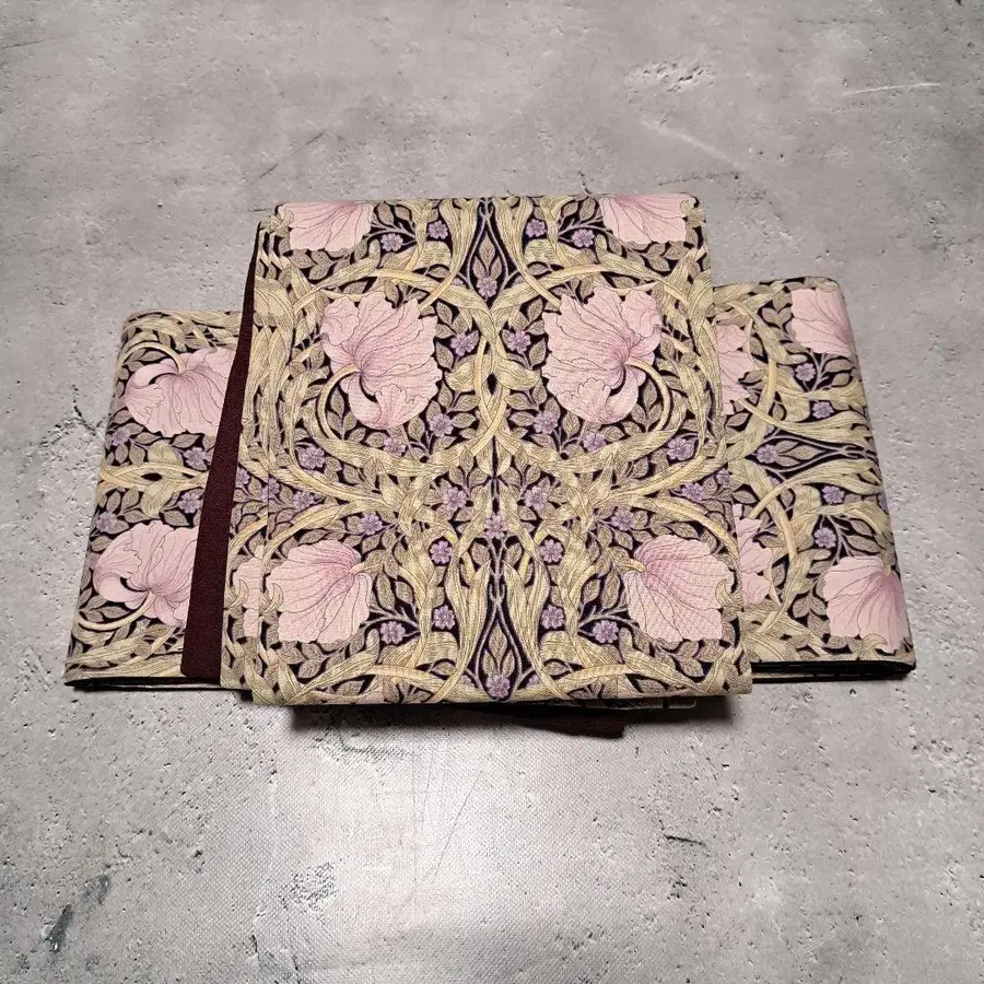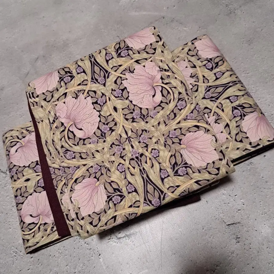 윌리엄 모리스의 V&A 컬렉션 핑 퍼넬 퍼플과, 일본산 코튼 린넨의 포도색으로 반폭 오비를 만들었습니다.