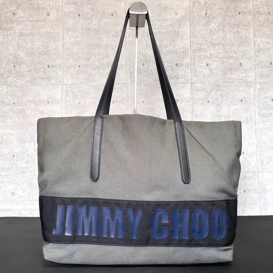 고품질 JIMMY CHOO PIMLICO 캔버스 그레이 로고 토트백