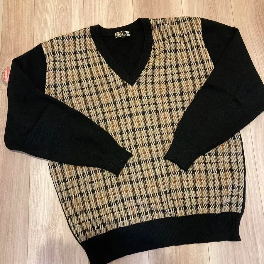 • [ 새상품급 ] 피에르 가르뎅 니트 스웨터 아가일 XL 블랙 울
