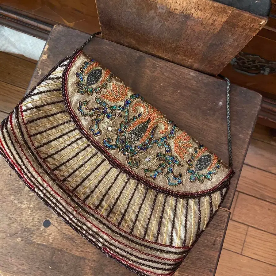 • 빈티지 실버 비즈 자수 클러치백