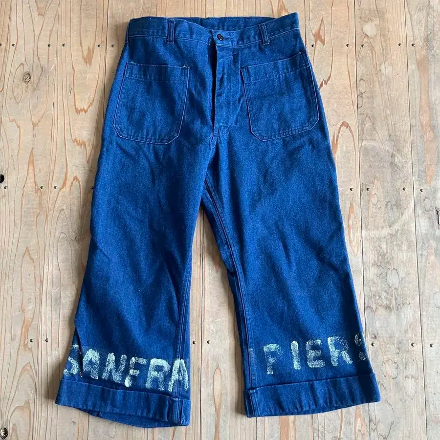 옷장을 정리하고 싶어서 대폭 가격 인하합니다! 가격 협상은 삼가주세요. Trousers Utility Men's Denim Sailor's Denim Pants 로스트힐즈 사가 제작한 US 네이비 미국 해군 세일러 데님 팬츠 샤나나밀 shanana mil에 의한 리메이크 제품입니다. 짧은 8부 기장 크롭. 미국제 ◯ 색상: 블루 계열 데님 ◯ 평평하게 놓았을 때 사이즈: 허리 72cm 인심 49cm ◯ 상태는 눈에 띄는 얼룩 등 없이 상당히 좋습니다. 탄력감도 남아 있습니다.