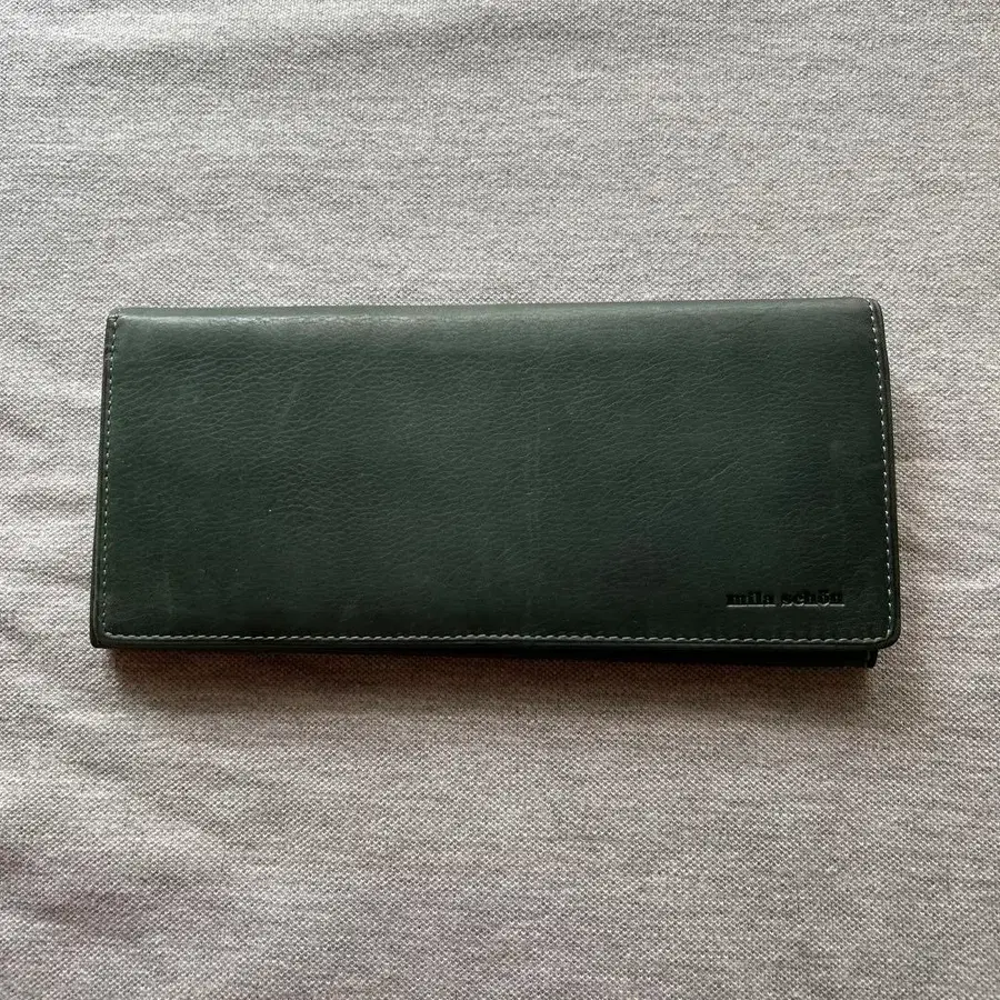 [미사용 새상품] mila schon 다크 그린 카프 스킨 가죽 장지갑