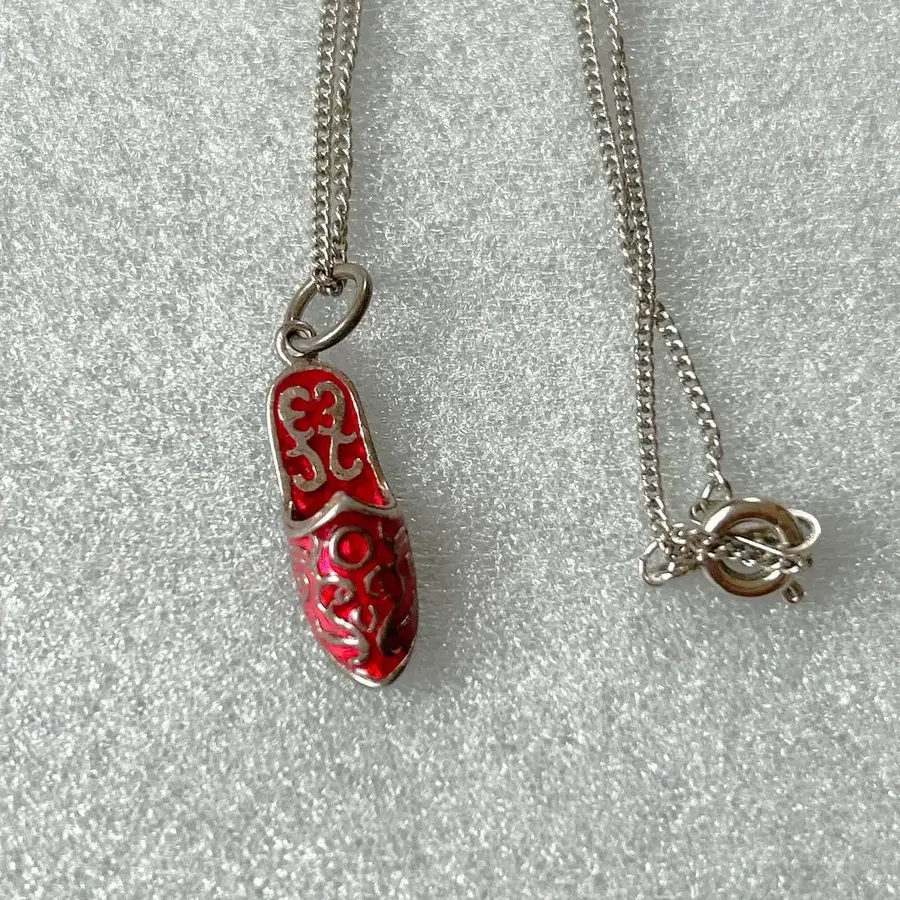 [ DI-BI ] 모로코 전통 신발인 바부쉬와 같은 모티브의 빈티지 실버 목걸이입니다. 아름다운 문양과 신발 모양이 귀여우며, 뒷면에는 925 각인이 있습니다. 오래된 제품이므로 약간의 슬레키즈 및 얼룩 등이 있습니다. ※ 상태는 이미지로 확인해 주세요. [ 8138 ] #일일특선_액세서리 ↑ 그 외에도 액세서리류를 다수 판매 중입니다 ♪ #스털링실버925 #참 #여성용 #vintage #SILVER #shoes #오란다신발 #일일특선