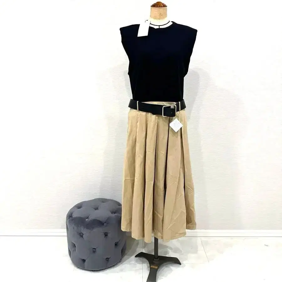 택 포함 새상품 릴리 브라운 플레어 스커트 라이트 그레이
