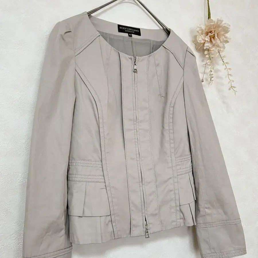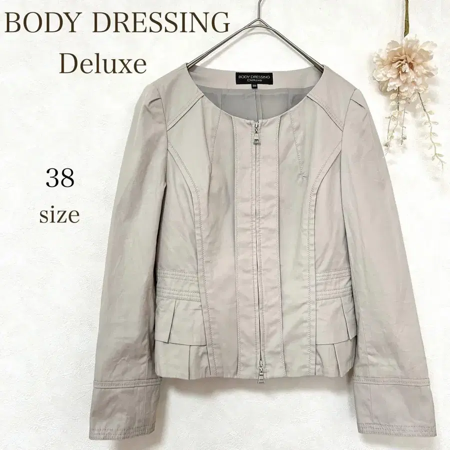 [ BODY DRESSING Deluxe ] ID.a0268 #Riry의행복Closet ♡ #Riry의행복Closet ♡ 여성용 #Riry의행복Closet ♡ 아우터 [ 상품 설명 ] 핏감 있는 라이트 베이지 색상의 노카라 자켓입니다. 지퍼 프론트 오픈 디자인으로 스타일리시하며, 뒷부분은 프릴로 되어 있어 심플하면서도 매우 귀엽습니다. ♡ 코튼 소재(96%)로 착용감도 좋습니다. ◎ * 상태는 전반적으로 매우 깨끗한 인상입니다. * 새 상품과 같은 완벽함을 원하시는 분께는 맞지 않을 수 있지만, 구제 의류만의 매력을 즐겨주시면 감사하겠습니다. ✼• ┈┈ •✼• ┈┈ •✼• ┈┈ ✼• ┈┈ •✼ ꕤ 작은 행복을 전해드릴 수 있다면 - (*ᴗ͈ˬᴗ͈) 그런 마음으로 의류와 잡화를 판매하고 있습니다. 아직 멋지게 활약할 수 있는 물건들을 다음 분께 이어갈 수 있다면 기쁠 것입니다. ♡ 가격 인하는 팔로우하신 후 편하게 말씀해주세요.(*´︶`*) ♡ 상품이나 시기에 따라 희망하시는 가격에 맞춰드리지 못할 수도 있지만, 그럴 경우 최대한 정중하게 안내해 드리니 안심하세요. ♪ 물론 즉시 구매도 대환영 ♪ ꕤ 사이즈/38 (M 상당) [ 평평하게 놓았을 때 치수 ] 어깨 너비 / 약 37cm 기장 / 약 49cm 가슴 너비 / 약 40cm 소매 길이 / 약 58cm ※ 약간의 오차가 있을 수 있으니 양해 부탁드립니다. * 정성껏 검품하고 있지만, 사람에 의한 확인이므로 누락이 있을 가능성도 있습니다. 그만큼 저렴하게 판매하고 있습니다. ※ 상품의 디자인, 상태에는 주관이 개입되어 표현 및 받아들이는 데 개인차가 있습니다. ※ 색상은 화면의 상태에 따라 다소 차이가 있을 수 있습니다. ※ 구매 후의 컴플레인은 대응하기 어려우니 충분히 이해하신 후 구매 부탁드립니다. (저의 불비 등에는 반품 대응을 해드리겠습니다.) ꕤ 발송은 메루카리 택배를 사용합니다. ※ 배송비를 절약하기 위해 컴팩트하게 접거나 압축하여 포장하여 발송합니다. ※ 보관상 또는 포장 시의 주름은 양해 부탁드립니다. ※ 불분명한 점이 있으시면 언제든지 질문해주세요. ♡ 기타 상세 내용 및 주의 사항은 프로필을 참고해 주시면 감사하겠습니다. (ᴗ͈ˬᴗ͈)ꕤ.゜ •✼• 멋진 인연을 진심으로 기다립니다 •✼• 방문해 주셔서 감사합니다. ♪