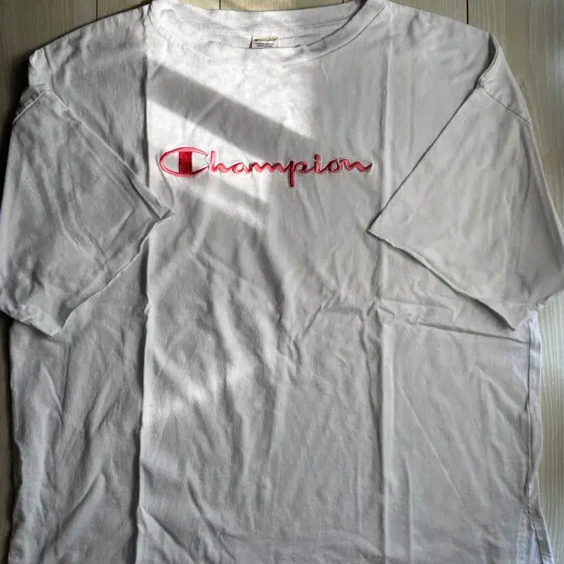 Champion 자수 로고 티셔츠 화이트 오버 사이즈 [레어 컬러]