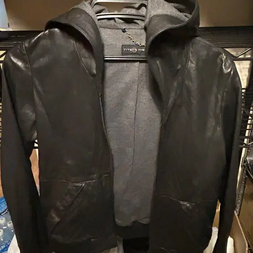 TITLE THE STORE 후드 부착 가죽 자켓 S
