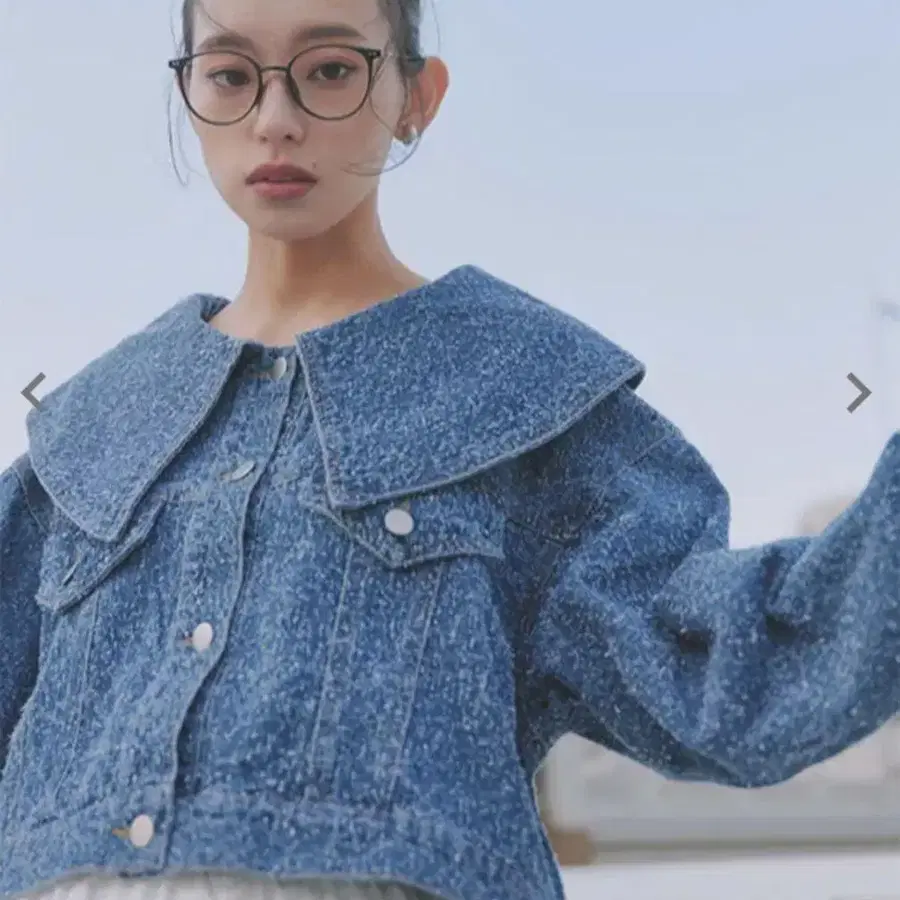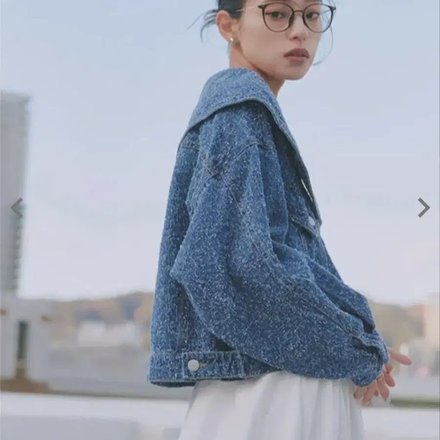 [ 미사용 새상품 ] 고베 레터스 빅 칼라 트위드 데님 자켓 블루