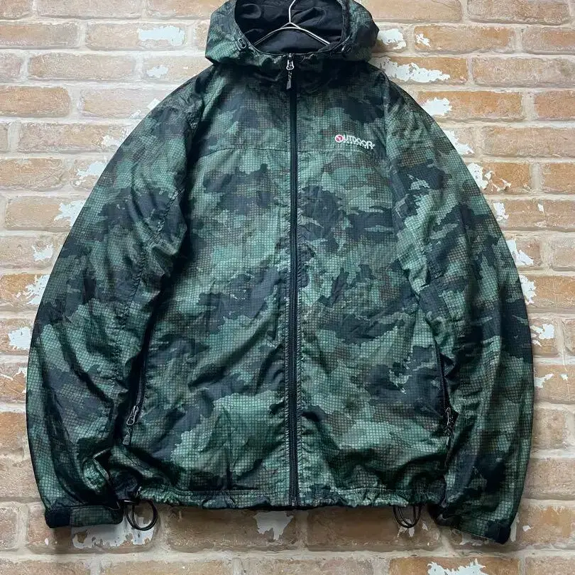 90s outdoor 나일론 자켓 카모플라쥬 도트 무늬 자수 y2k 카키