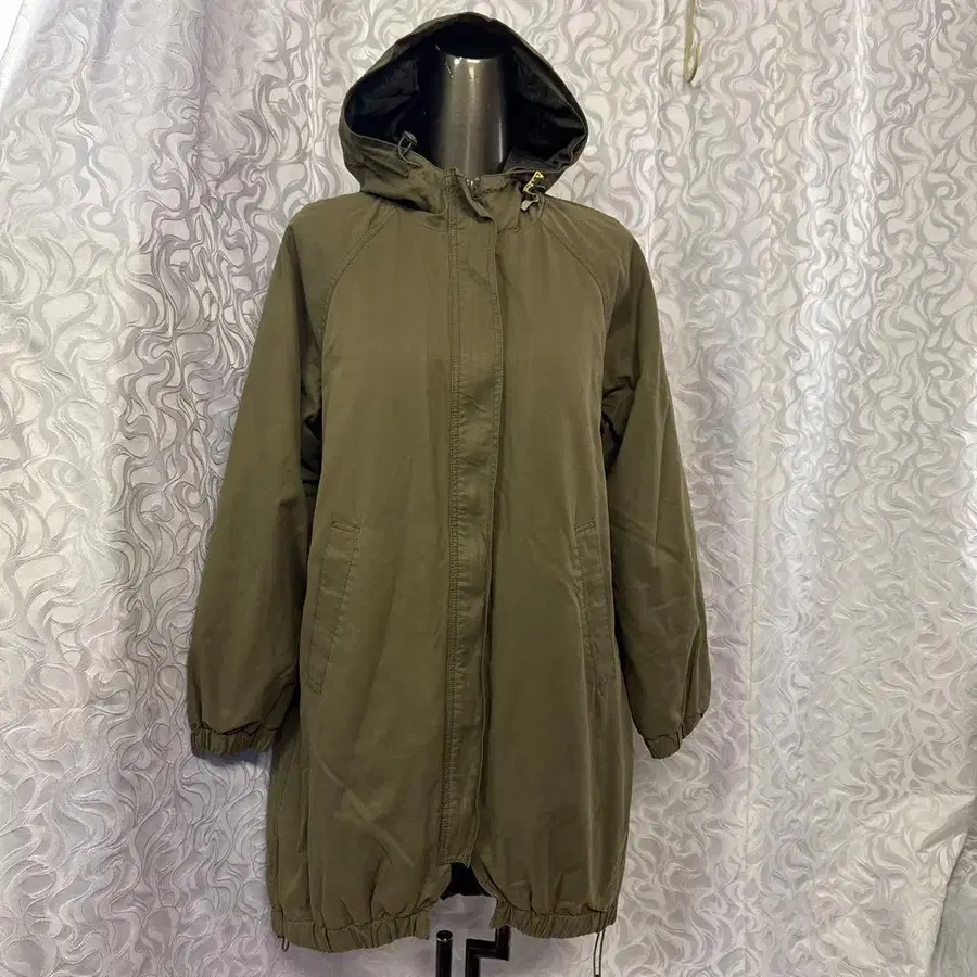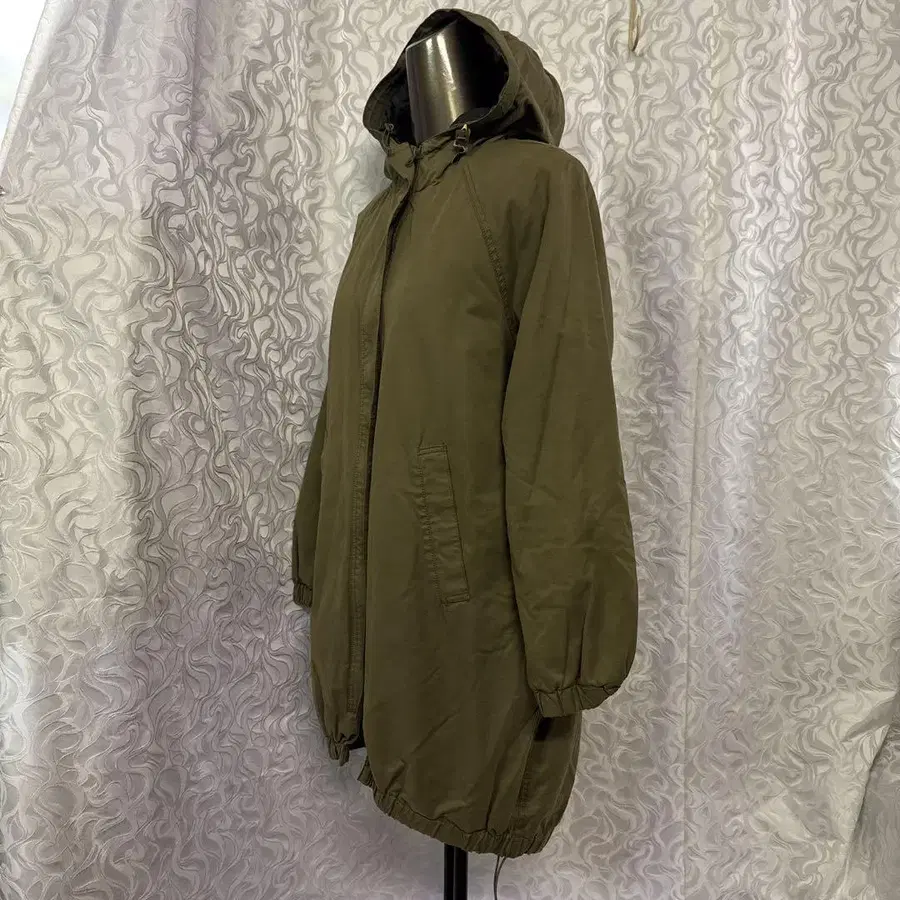 Burette Club 후드 부착 올리브 그린 모즈 코트