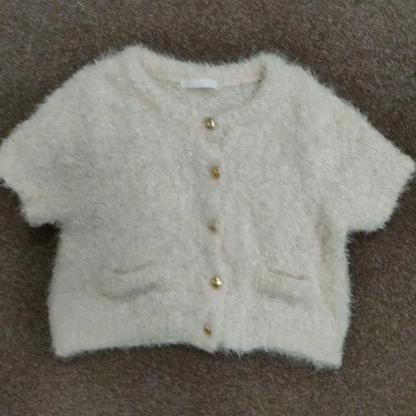 화이트 퍼(Fur) 느낌의 쇼트 가디건 니트