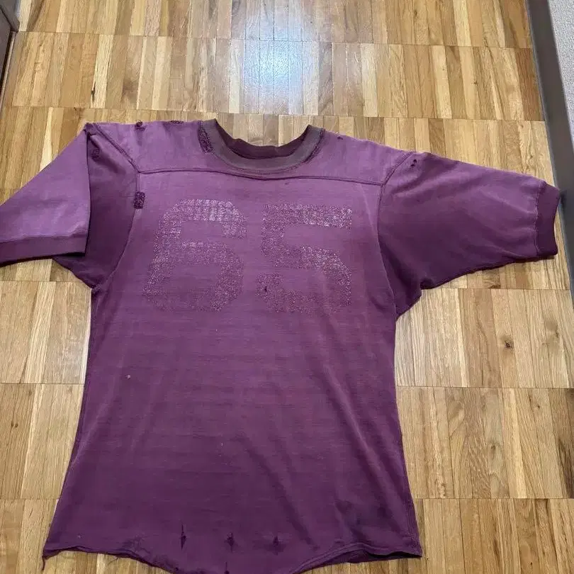 40수 래글런 7부 소매 티셔츠 넘버링 65 보로 짙은 빨간색