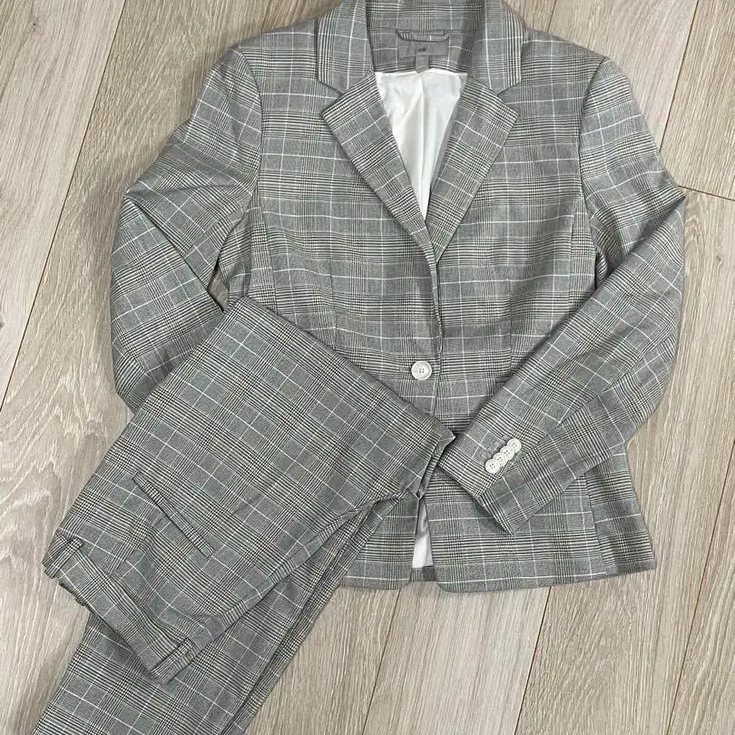 그레이 체크 무늬 비즈니스 정장 상하의 세트