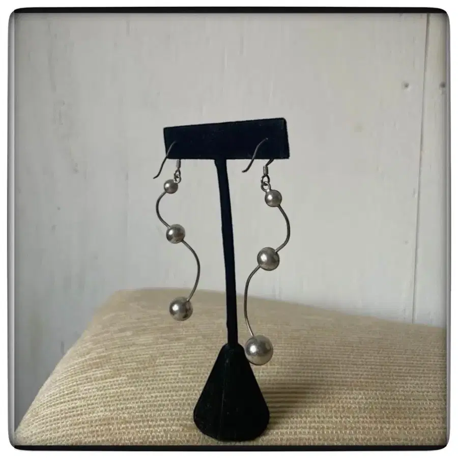 빈티지 구제 의류 매장에서 구매한 귀걸이입니다. 실버 볼과 곡선적인 와이어가 특징인 드롭 귀걸이입니다.