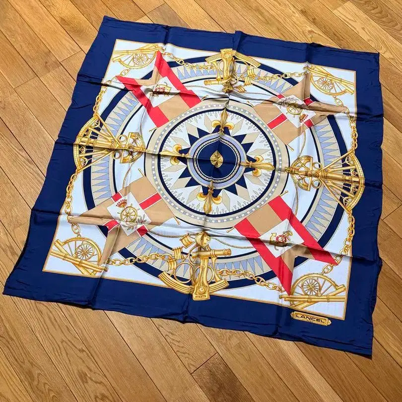 란셀 스카프 자택 보관했던 상품입니다. 접어서 보관하여 생긴 주름이 있습니다. 세로 86 가로 86 실크 100%