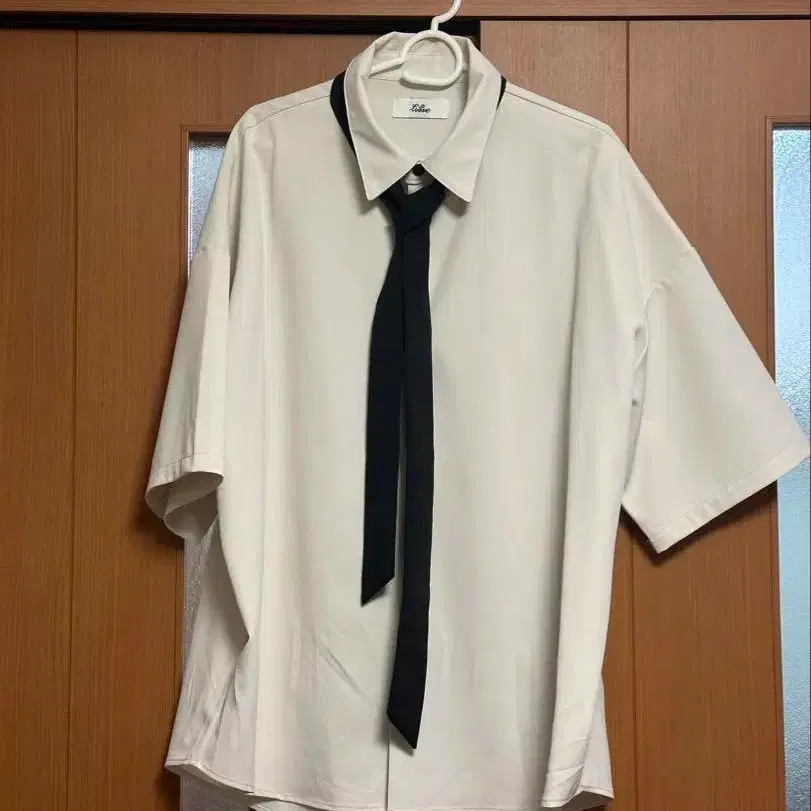 반팔 셔츠 x 얇은 넥타이 세트 (화이트 x 블랙)