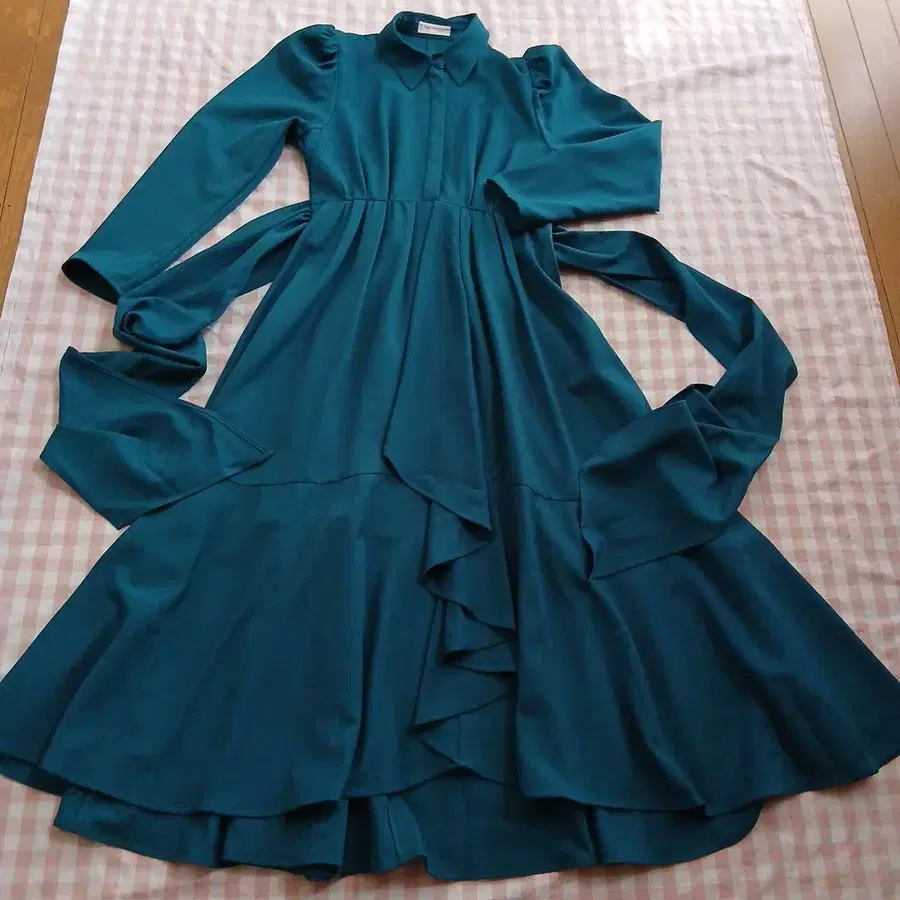 • 새상품 L 플리츠 원피스 롱 네이비 겨울 포멀 셔츠 동창회
