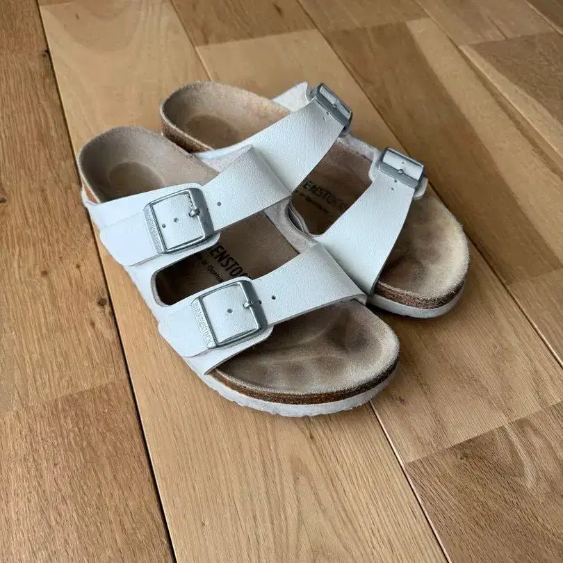 사진과 같이 사용에 따른 흠집/얼룩이 있지만 아직 신으실 수 있다고 생각합니다. - 브랜드: Birkenstock - 사이즈: 36 - 색상: 화이트 - 소재: 코르크 밑창 - 스타일: 2 스트랩 샌들