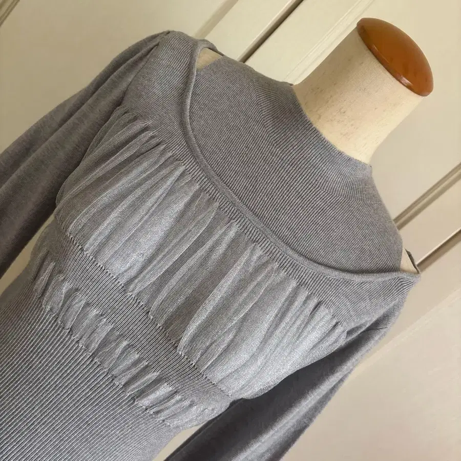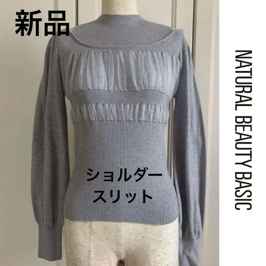 새상품 내추럴 뷰티 베이직 숄더 슬릿 튤 니트