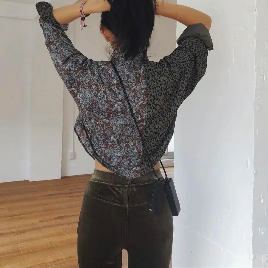 JUEMI 레오파드 페이즐리 크롭 셔츠