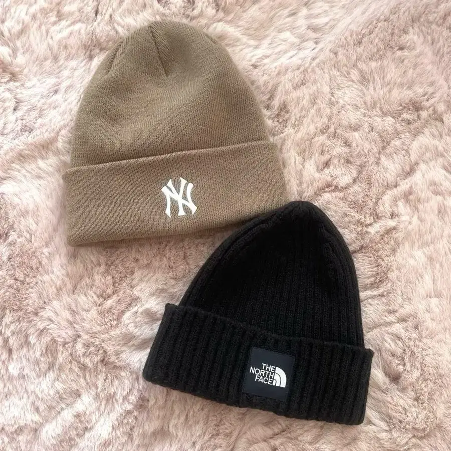 여성 니트 모자 2개 세트입니다. 뉴욕 양키스 베이지 컬러 니트 모자는 내부에 작은 구멍이 있습니다. 착용 시에는 보이지 않아 신경 쓰이지 않습니다. 사진으로 확인 부탁드립니다!