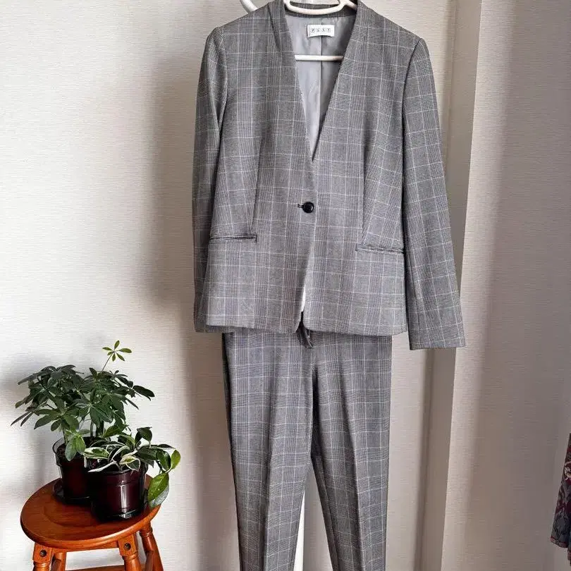 그레이 체크 무늬로 주름이 잘 가지 않는 소재이며,