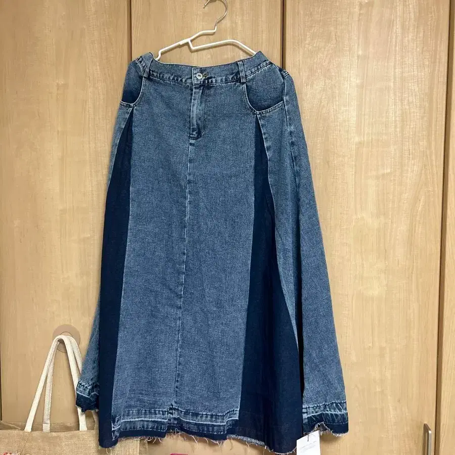 ABITOKYO 20년 데님 배색 터치 플레어 데님 스커트