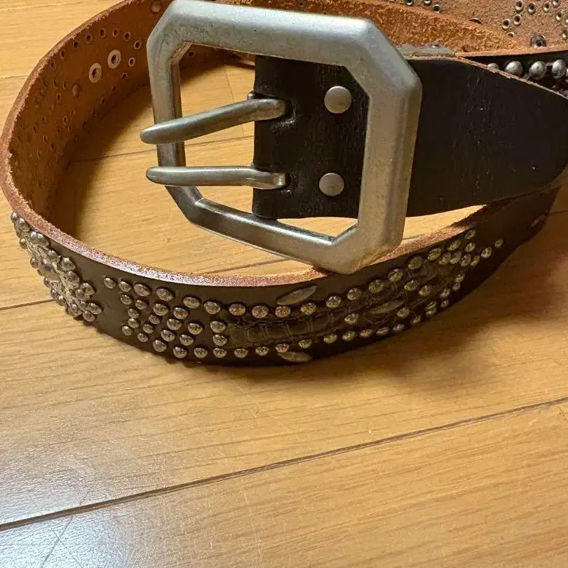 [ 00s archive ] 가죽 스터드 벨트 천연 가죽 빅 버클 y2k