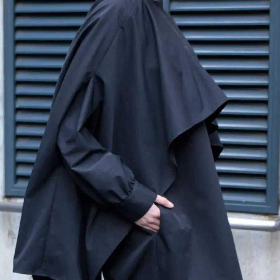 AVIE 드레이프 케이프 블라우스 긴팔 블라우스 블랙