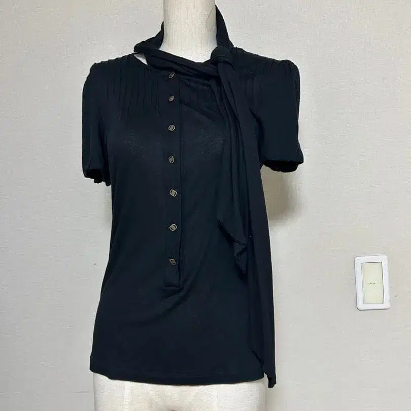 브랜드의 대표적인 모티브 (간치니였던 것으로 기억합니다)를 버튼에 디자인한, 고급스럽고 디자인성이 높은 반팔 니트 풀오버입니다.
