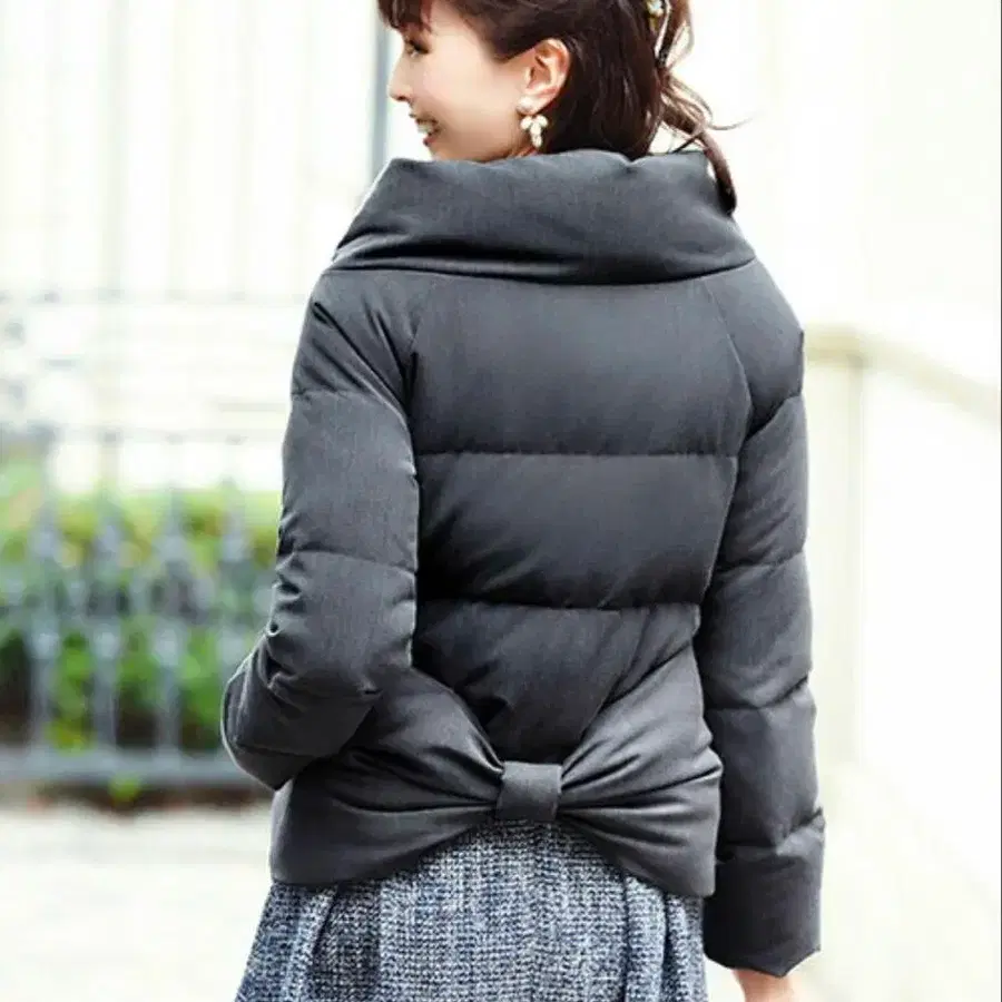 루이엘 부티크 백리본 숏 다운 코트 아쉬 그레이