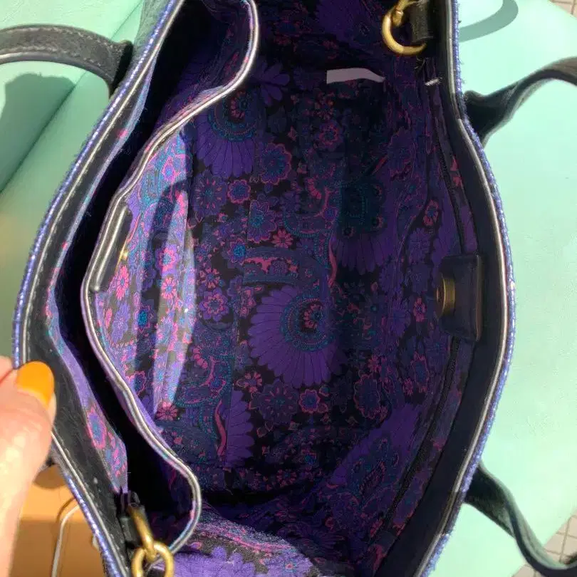 보라색 페이즐리 무늬 내부를 가진 합성 피혁 숄더백. - 내부 디자인: 보라색 페이즐리 무늬 - 소재: 합성 피혁 - 핸들 타입: 숄더 스트랩 포함 - 포켓: 내부 포켓 있음 - 색상: 블랙, 보라색 가마구치 백 포함 방문해 주셔서 감사합니다.