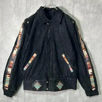 • 빈티지 네이티브 무늬 킵 레더 절개 하프 코트 자켓