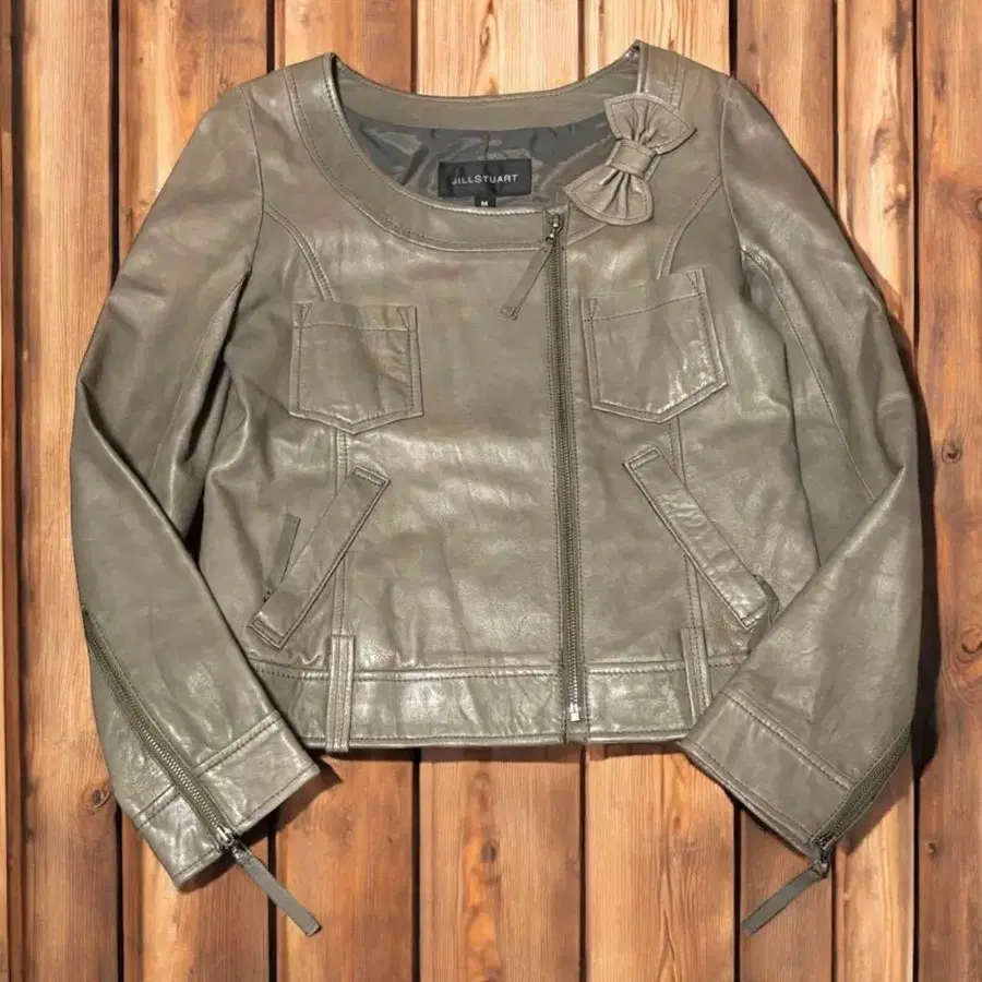 질 스튜어트 라이더 자켓 싱글 노카라 양가죽 M