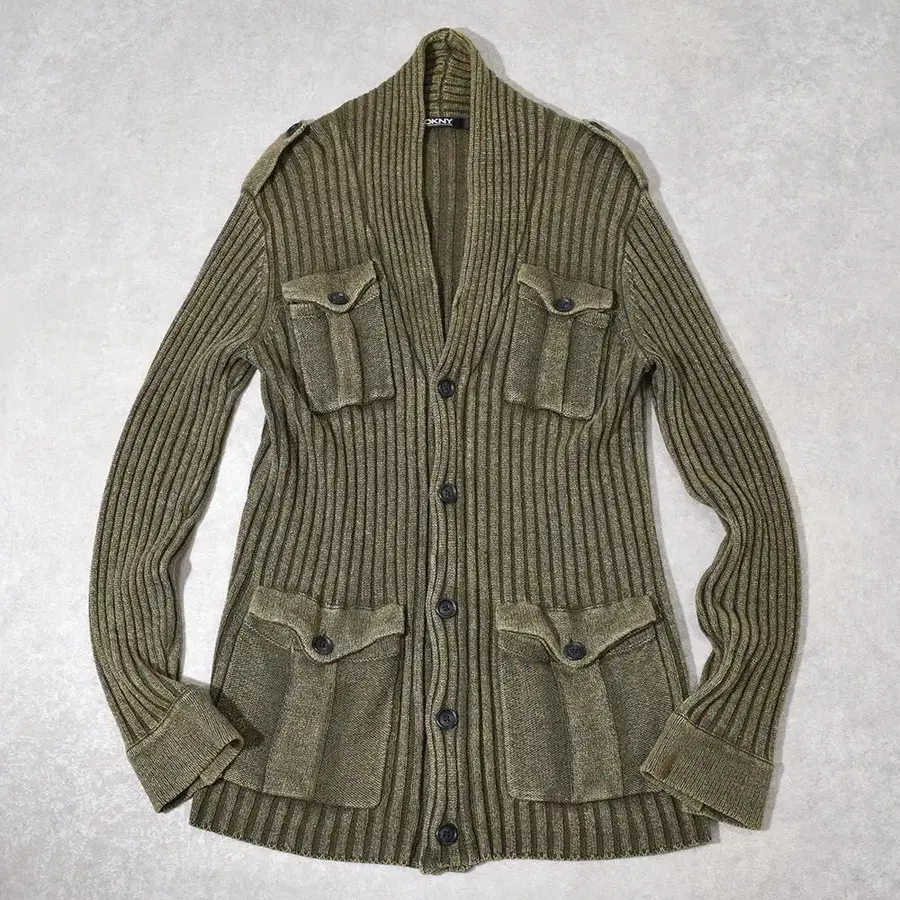 헤이세이 y2k 00s DKNY / Donna Karan New York 다나카란 밀리터리 리브 니트 자켓 가디건 XL 브라운 그런지 시크 스타일