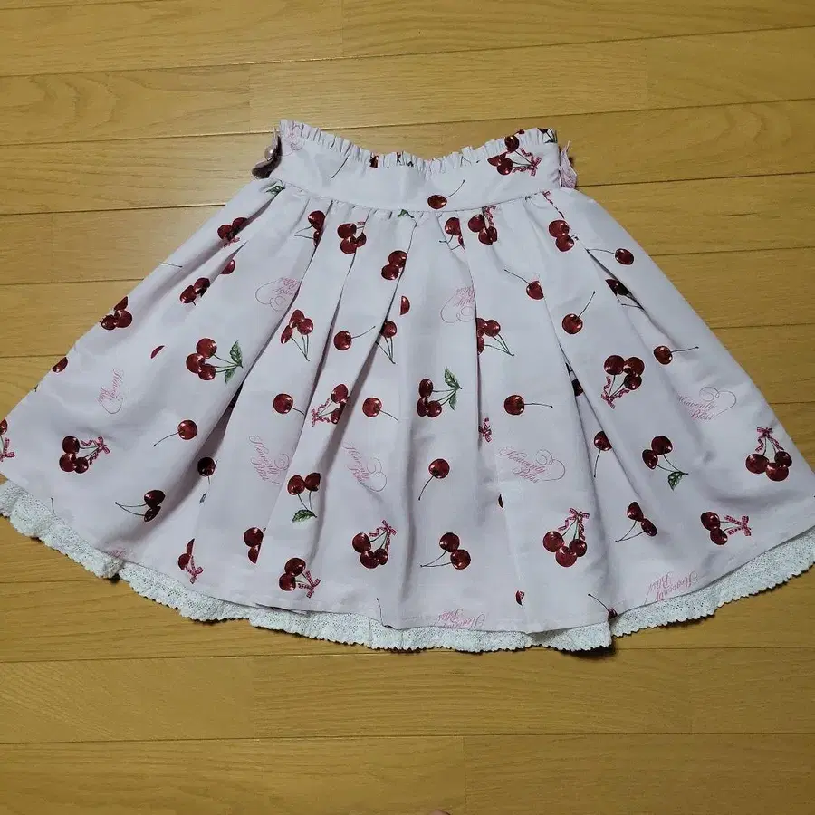 앙크루즈 체리 패턴 핑크 스커트 허리밴딩 레이스 포함