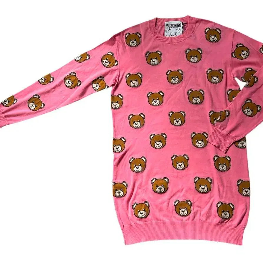 귀여운 곰 디자인이 특징인 핑크 니트 원피스. - 브랜드: Moschino - 색상: 핑크 - 소재: 코튼 100% - 사이즈: 36 - 디자인: 곰 자수 평평하게 놓았을 때 가슴 너비 49 기장 84 방문해 주셔서 감사합니다.