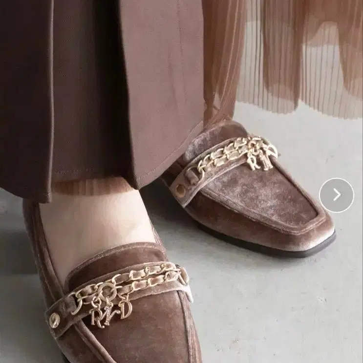 벨벳 소재의 교체 가능한 버클이 달린 로퍼입니다. 사이즈만 다르고 실내에서 시착만 했습니다. 부속품 모두 갖추어져 있습니다. - 소재: 벨벳 - 장식: 골드 버클 방문해 주셔서 감사합니다.
