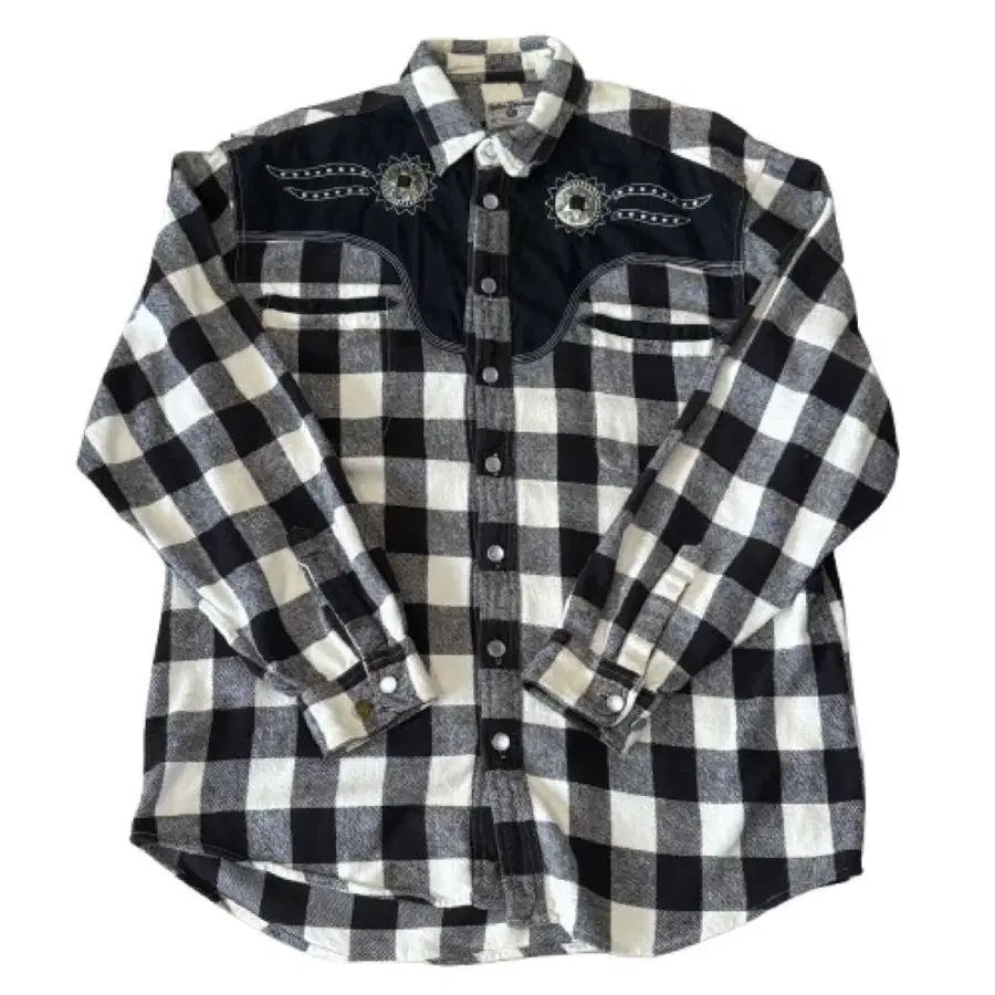 체크 무늬와 자수가 특징인 웨스턴 셔츠.