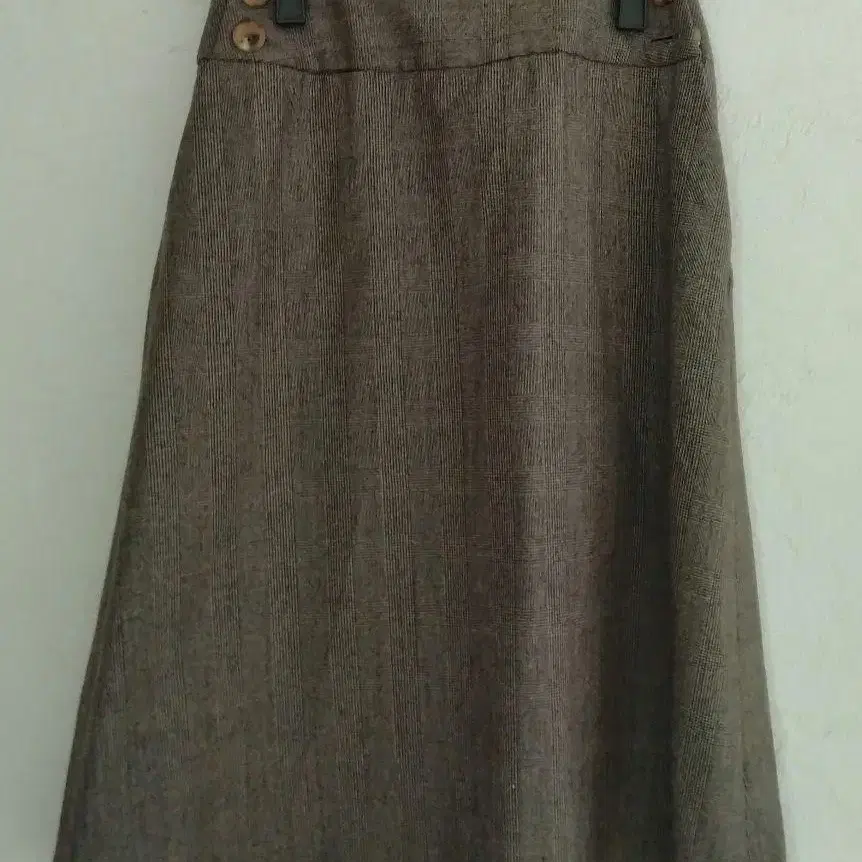 울 글렌체크 패턴 A라인 스커트, 버튼이 달린 허리 디자인. - 색상: 브라운 계열 (그레이에 가까움) - 소재: 울 100% - 디자인: 체크 무늬 - 스타일: A라인 - 허리: 버튼 포함 스커트 길이 64, 허리 단면 33 방문해 주셔서 감사합니다.