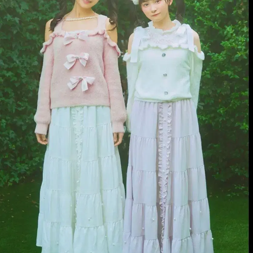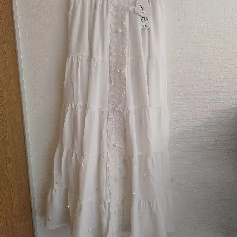 Ank Rouge 펄 티어드 롱 스커트 화이트 미사용 새상품