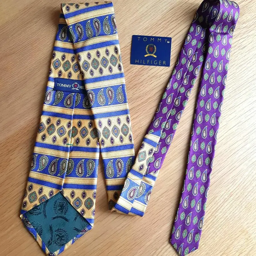● 브랜드 TOMMY HILFIGER 타미힐피거 빈티지 vintage ● 색상 골드 (오렌지), 블루, 퍼플 ● 깃 끝 사이즈 10cm ● 전체 길이 140cm ● 소재 100% IMPORTED SILK ● 원산국 MADE IN USA PRINTED IN ITALY 자택 보관품입니다.