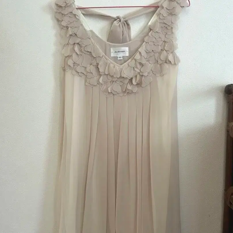 프릴 디자인의 베이지 슬리브리스 원피스, 사이즈 S. - 색상: 베이지 - 디자인: 프릴 장식 슬리브리스 - 사이즈: S 방문해 주셔서 감사합니다.