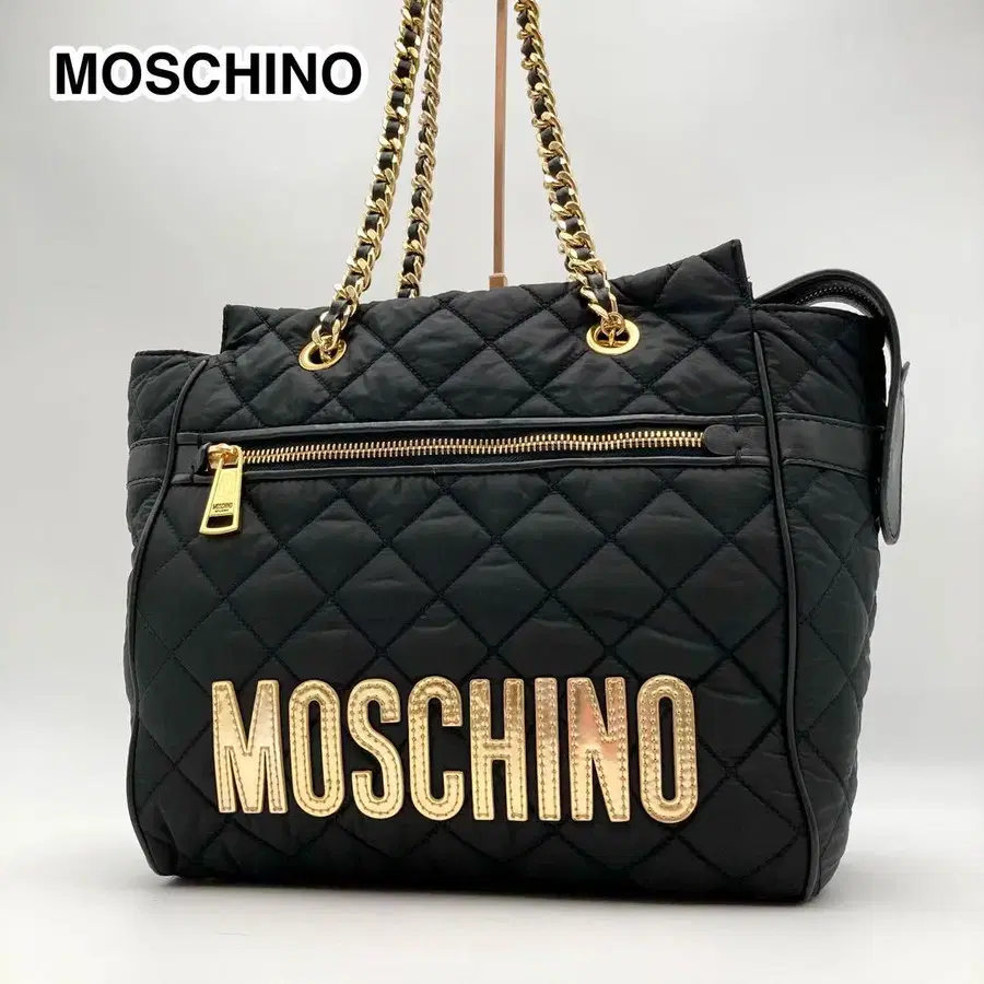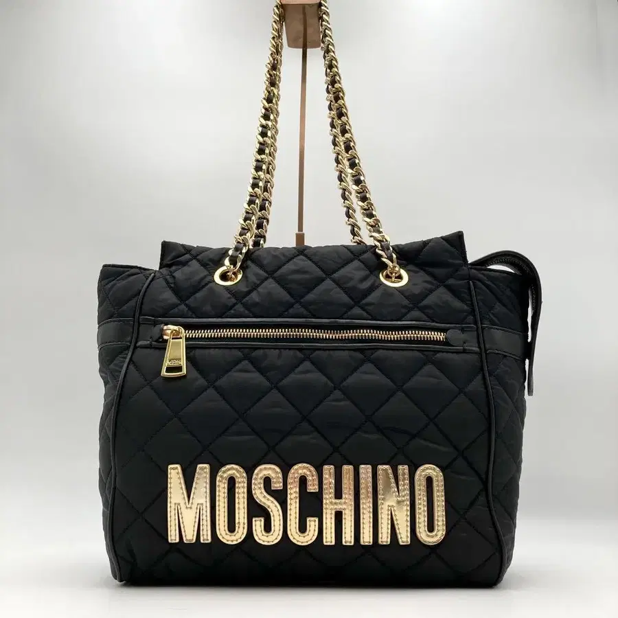 컨디션 최상 모스키노 토트백 블랙 빅 로고 체인 대용량 퀼팅