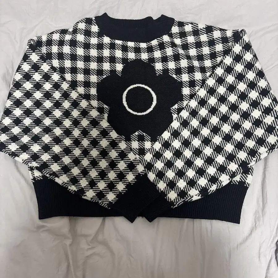 MARY QUANT 체크 무늬 꽃 모티브 니트