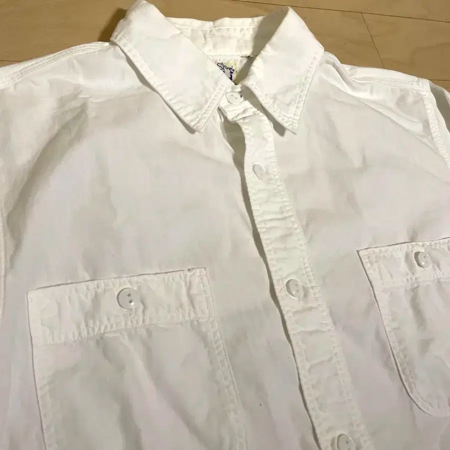 정가 21,780엔 or slow 화이트 샴브레이 셔츠 빈티지