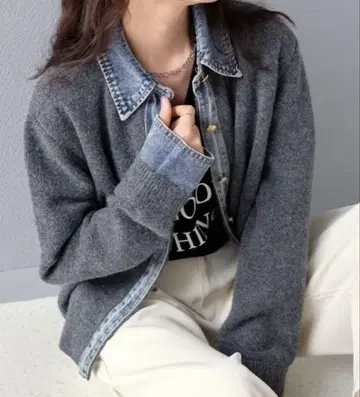 • 가디건 니트 가디건 여성용 상의 크롭 데님