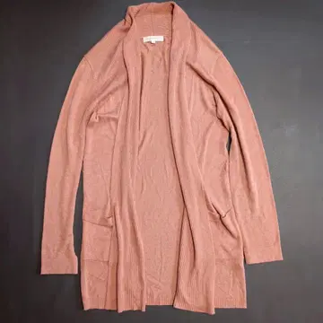[그로브] 프론트 오픈 가디건 (L) 살몬 핑크 긴팔 니트 리브 무지