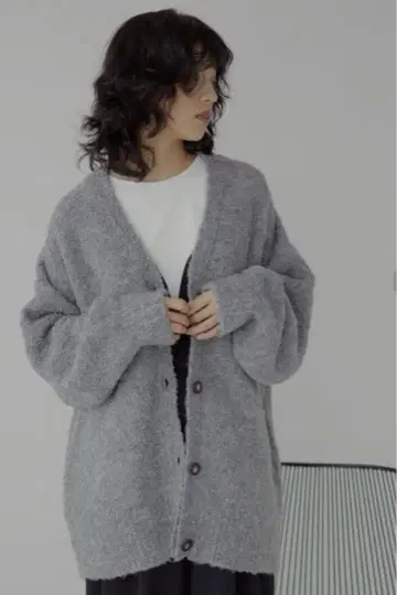 • SLOBE IENA 워셔블 울 하이 게이지 리브 V넥 가디건